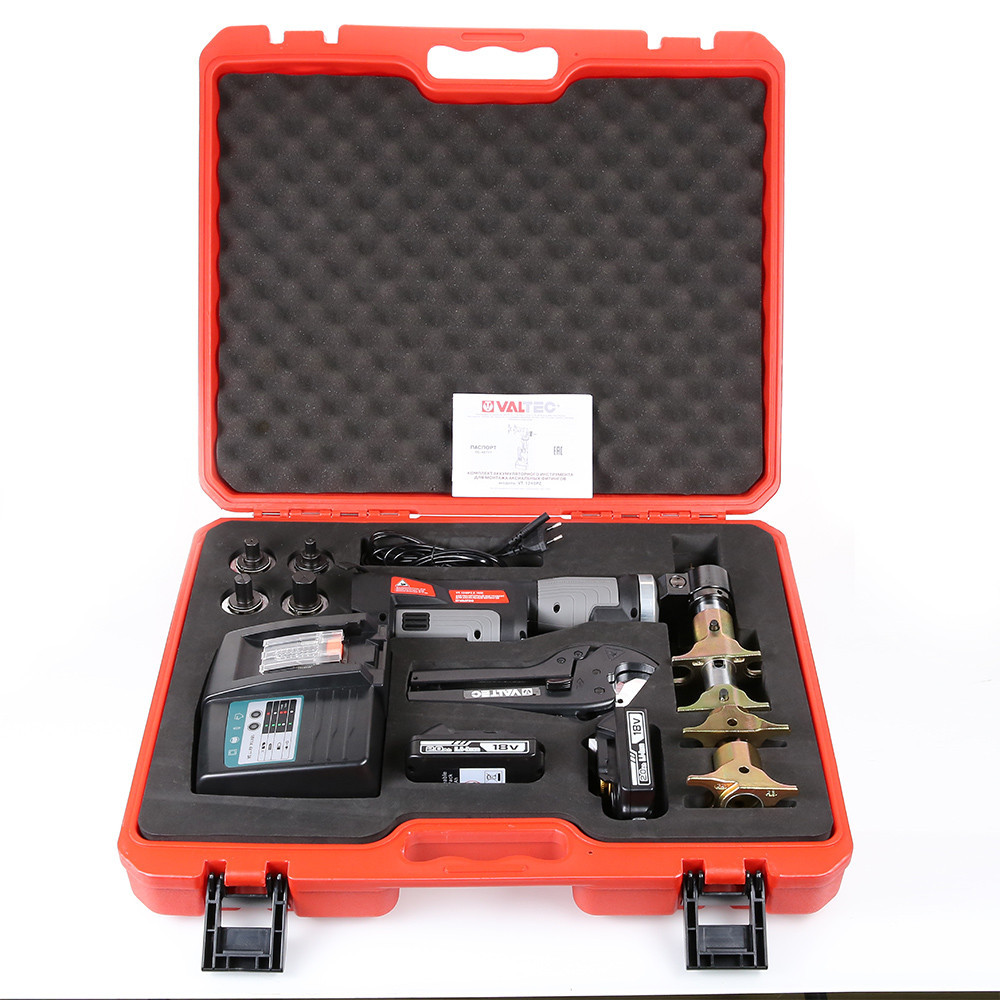 Комплект аккумуляторного инструмента, для монтажа аксиальных фитингов 16-32мм (2 А*ч) VALTEC